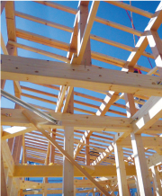 素材となる木材の欠点を分散または取り除き、木材の不均一性からくる狂いや乾燥時の形状変化が少ない寸法安定性の高い構造用材。小径材などから長大材の生産が可能であり非常に合理的な木材です。