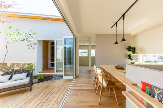 室内と室外が緩やかにつながり合い、心が落ち着く懐かしさと四季のうつろいを感じながら暮らす喜びがあります。中庭というプライベート空間を存分に利用して、家族や友人と一緒にバーベキューやブランチなど、周りを気にせずにパーティーも楽しめます!