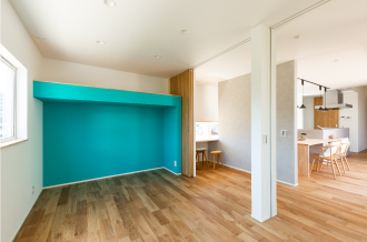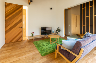 お部屋とお部屋が繋がる造りで、どこにいても家族の気配を感じられる安心感。室内に取り込まれるやわらかな自然光と優しい風を体感できるのが特徴です。空間を広く取ることにより、開放感も生まれるのでお子様が大きくなっても家族みんなでゆったりと過ごせる間取りとなっています。